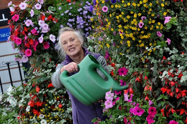A volunteer garden army was set up and have ever since been working their magic with the help of local groups. Funding has been provided by generous donations from individuals, groups, businesses and grants. Hilda and her army have transformed the town with trees, shrubs and flowers and have won numerous awards.